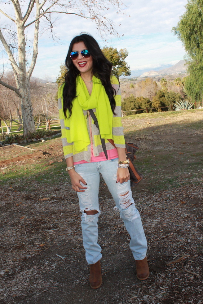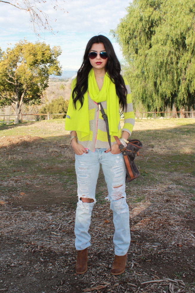 Sweater- Cable and Gauge | Shirt- H&M | Pants- Hollister | Booties- Carlos Santana | Bag- Zara | Sunnies - American Eagle | Bracelets- Juicy Couture ; Posh locket | Watch - Betsey Johnson |