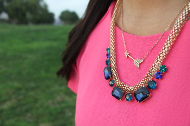 Dress- via Marshall's | Necklaces - Love Culture (sold out online similar here || arrow necklace here ) | Sandals - Schutz | Bag- Rebecca Minkoff | Sunnies- Prada | Bracelets- Charming Charlie , Gigglosophy , Forever21, Kate Spade ( bday gift from bff ) | Watch- Michael Kors |