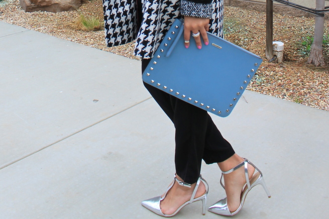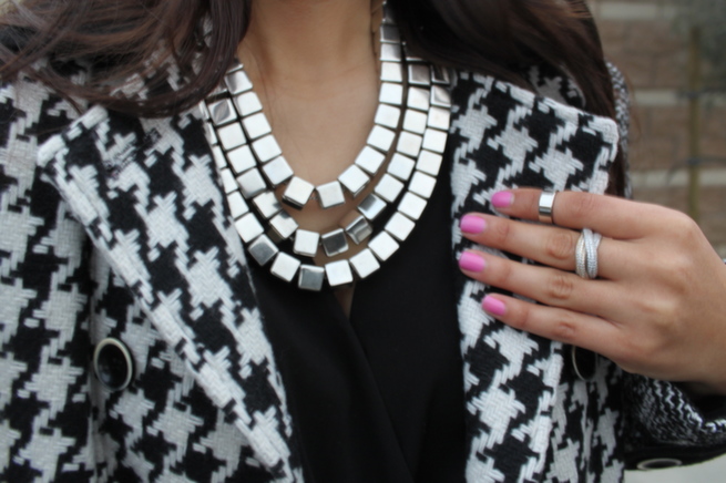 Romper- via TJMaxx (similar)  | Necklace- TJMaxx | Shoes- Zara <old > ( identical here !! )  | Bag- Rebecca Minkoff | Coat- Express | Bracelets- Charming Charlie , Kate Spade| Watch- Michael Kors| Ring- Bonnie Jonas|