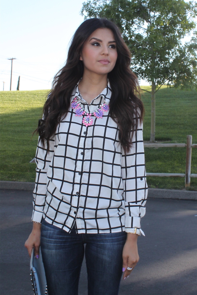 Happy Friday Everyone! Today I am sharing a look that is definitely a favorite of mine. I absolutely loved wearing this dress- the color and cut is perfect for spring and summer! The perfect finishing touch was definitely this gorgeous necklace. Since the dress is a solid color, and it really needed a pop in the accessories. I love the design of the necklace because it has a modern tribal feel that compliments the flowy tiered dress.