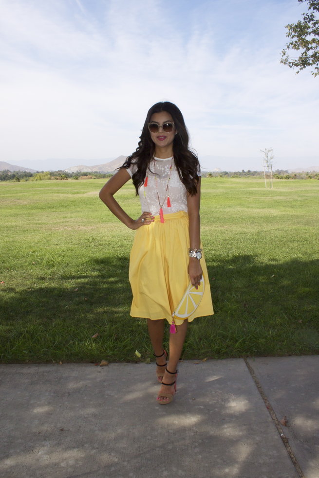 I love love love those heels...and that lemon clutch! Great blog...just started following you on Bloglovin!