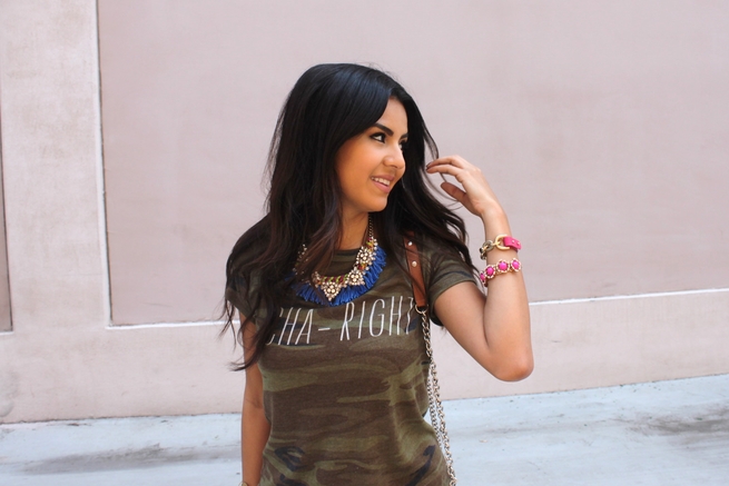 Sooo when life gets rolling , I get silly. Yes, SILLY. I am a goff ball that is always a mess. And I am a hopeless optimist that tries to believe that everything will work out. Because the reality of life is that nothing is perfect. All we can do is enjoy the journey of life and learn to laugh. I like to joke about life and try to never take anything too seriously. Which is why I love Style Lately tops so much. I am constantly falling in love with the cleaver tag lines on their tops... and when I saw a cleaver tag line on a camo print..well, I fell head over heels instantly !