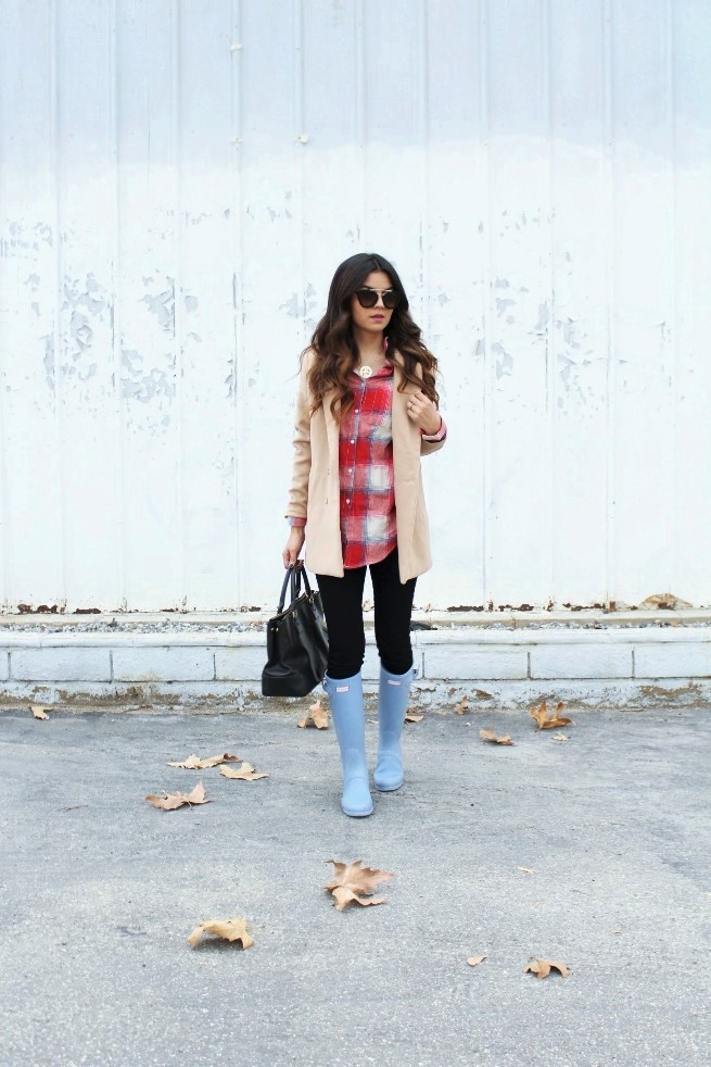 I've been wearing this top too much. But #sorrynotsorry. It's just a good plaid top. It's really comfortable and easy to throw on my go. Today's look is rainy day inspired. The weather has been a little overcast and rainy vibes have been happening all week. So finally I put on my rainboots and threw caution to the wind !