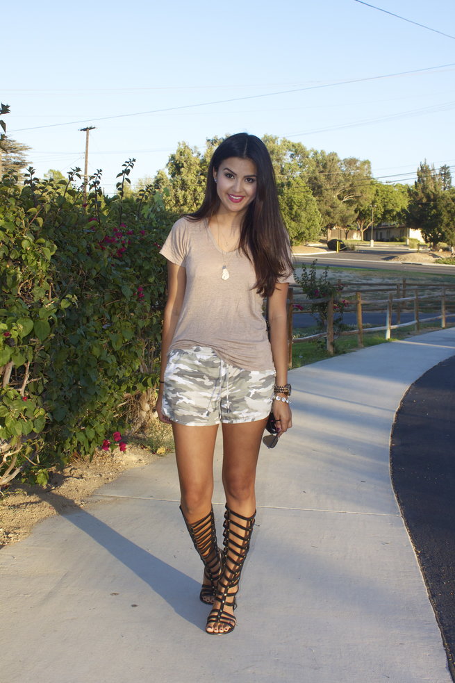 Hi everyone! Today I am sharing a look that incorporates two of my favorite pieces: these gladiator sandals and these camo shorts. I previously shared a couple looks on Instagram with these shorts ( here and here). However, they had not made an official appearance on the blog soo... taa daaaa!