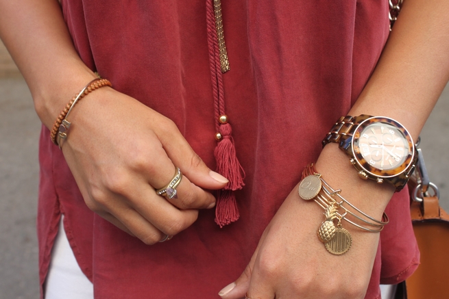 Dress- Ella Moss via Nordstrom Rack (similar here and here) | Necklace- SoCal Gems c/o | Sandals- Zigi Girl ( similar here and here) | Bracelets-SoCal Gems c/o; Itchelita Jewelry c/o | Ring- Chloe and Isabel c/o | Bag- Vince Camuto (similar here and here) |