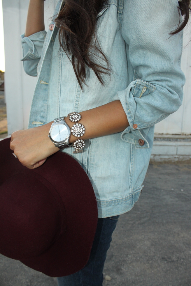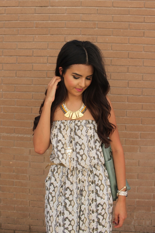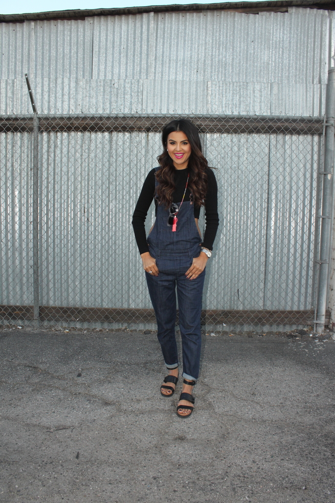 Top- Forever21 (old, similar here ) | Overalls- Articles of Society c/o | Sandals - Nasty Gal ( similar here ) | Necklace- Express ( similar here ) | Bracelet-Itchelita Jewelry c/o | Watch- Michael Kors | Sunniest- Forever21 |