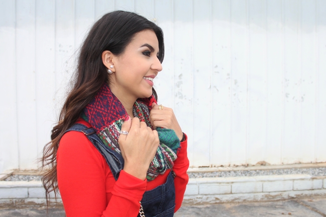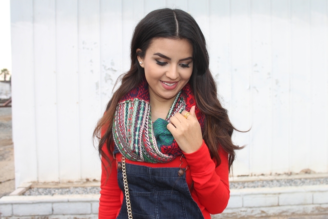 Top- Target | Overalls- Articles of Society c/o | Bag- Rebecca Minkoff | Snood- H&M (old, Simi,ar styles available in store) | Shoes- Shoemīnt | Earrings- Itchelita Jewelry c/o |