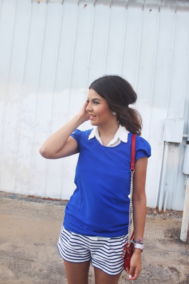 Tops- via Marshall's | Shorts- JCrew Factory | Bag- Rebecca Minkoff | Sandals- Schutz (old, still available in red, black and snake print) | Watch- Michael Kors |