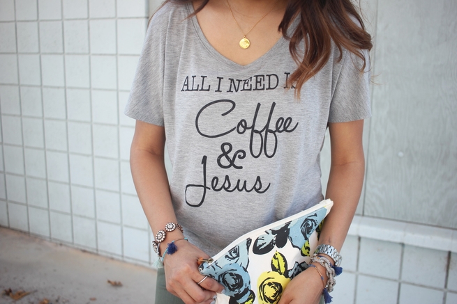 Tee - Thread Tank Apparel c/o | Jeans- similar here | Jacket- Banana Republic | Bag- Kate Spade ( other colors here and here) | Wedges- Steve Madden | Watch- Michael Kors |