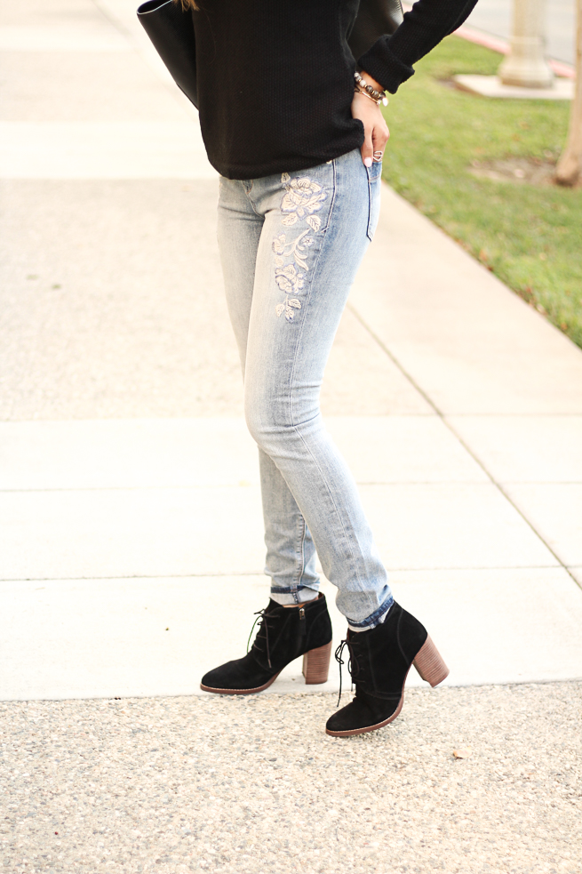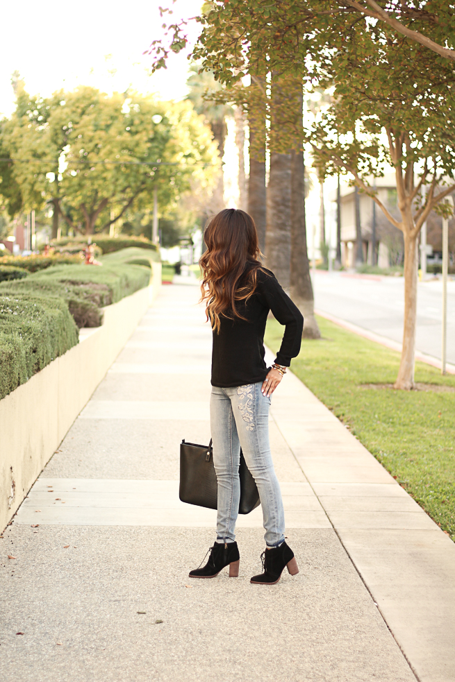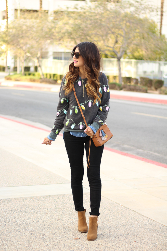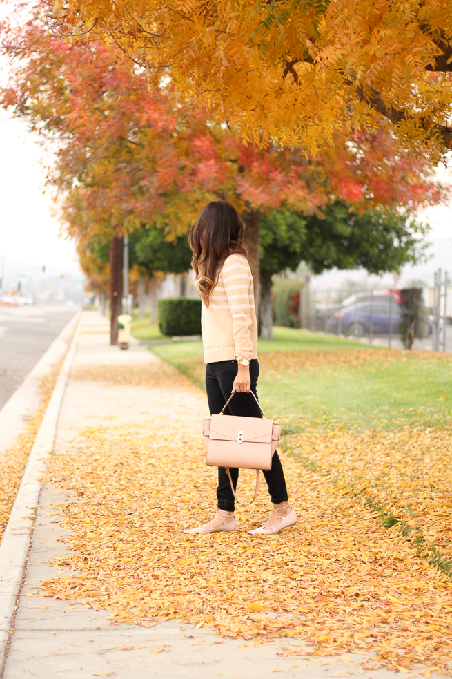 So, today I am sharing a sequin outfit that is great for any festive days..like for NYE! It can be intimidating to wear sequins... like when is appropriate?! Well, without a doubt sequins are appropriate for New Years Eve!! I fell in love with these rose gold leggings, mainly because I any thing pink is that much more special. So I decided to keep the outfit girly, and wore it these simple bow tie scrappy ankle heels. I also can't stop wearing this sweater...i've literally worn this three times in one week. The neutral color makes is super versatile, and the ruffle sleeve make any outfit pop. Trust me you will be seeing more of this sweater in the weeks to come on the blog (fair warning).