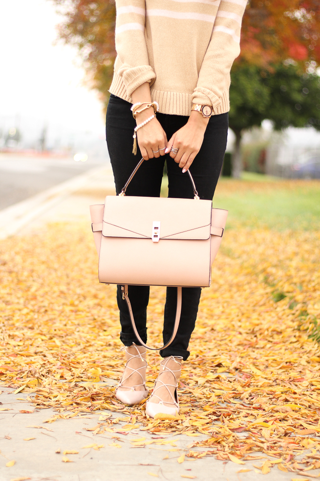 Sweater- SheIn c/o | Leggings- Windsor | Handbag- Henri Bendel c/o | Heels- Steve Madden | Bracelets- Bourbon & Bowties c/o