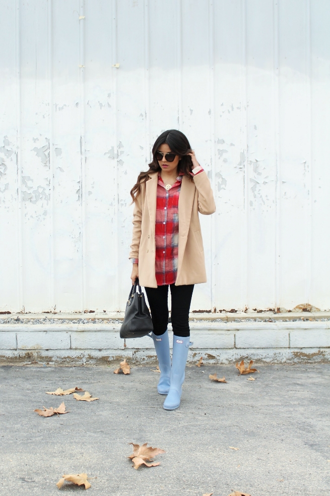 I've been wearing this top too much. But #sorrynotsorry. It's just a good plaid top. It's really comfortable and easy to throw on my go. Today's look is rainy day inspired. The weather has been a little overcast and rainy vibes have been happening all week. So finally I put on my rainboots and threw caution to the wind !