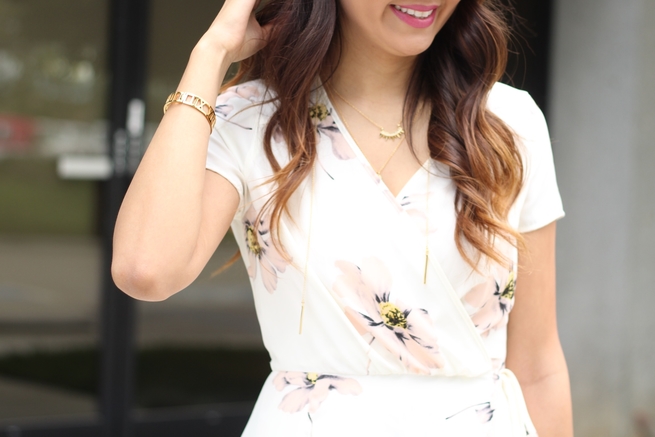Floral prints for Spring...big surprise. But, floral prints are just a good idea for this season- am I right?! New blooms just make me happy, especially when I am wearing them haha. Lately, I've been drawn to pretty floral prints with bright colors. However, I just adore this simple wrap dress. It's more of an understated floral design and is such an effortless outfit. #easybreezy