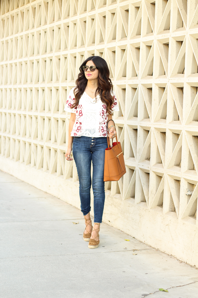 I love boho looks, however I like boho pieces that are a little more refined or tailored. For example, I love these jeans with the button up detail, this relaxed and vintage detail are just enough boho for me. I love oversized pieces, however for a boho look, this can be overwhelming for me. SO- my favorite interpretation on boho is this outfit here. Embroidered, fitted, and simple.