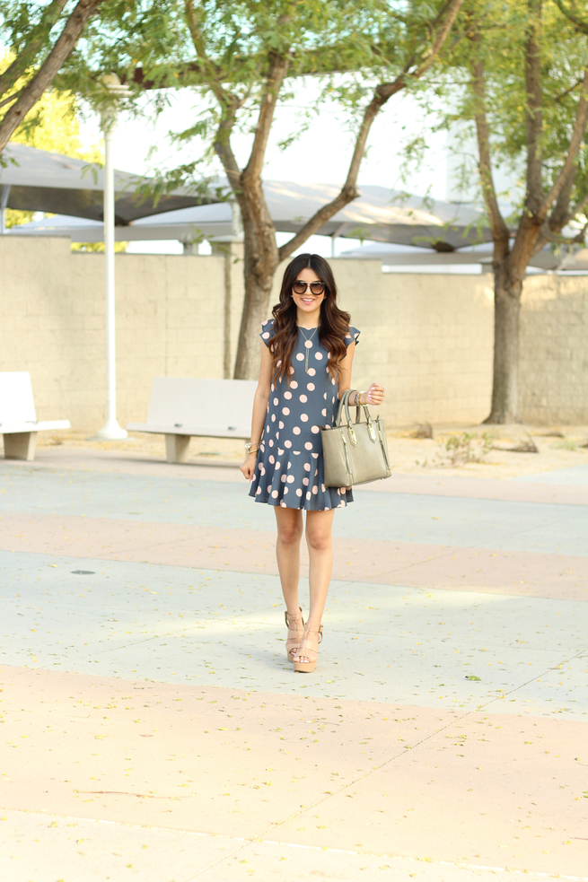 Today I am sharing a favorite look of mine, I mean- how cute are these polka dots! I love how girly polka dots can be, and this navy and blush color are a great color combo. There is also a similar skirt and pant version with the same print. The best part is that it's currently on sale.