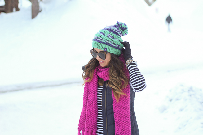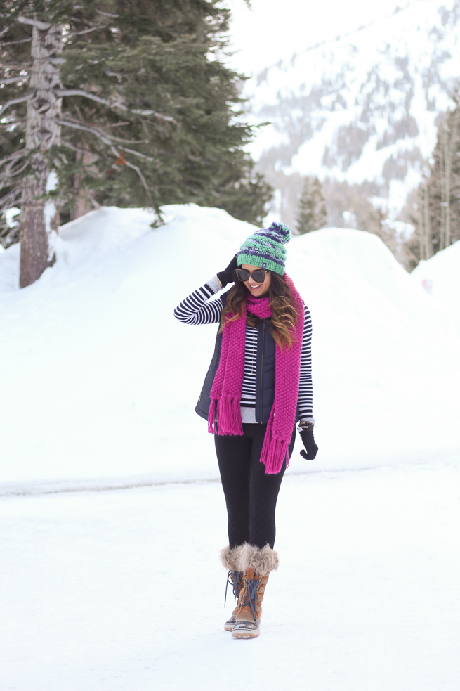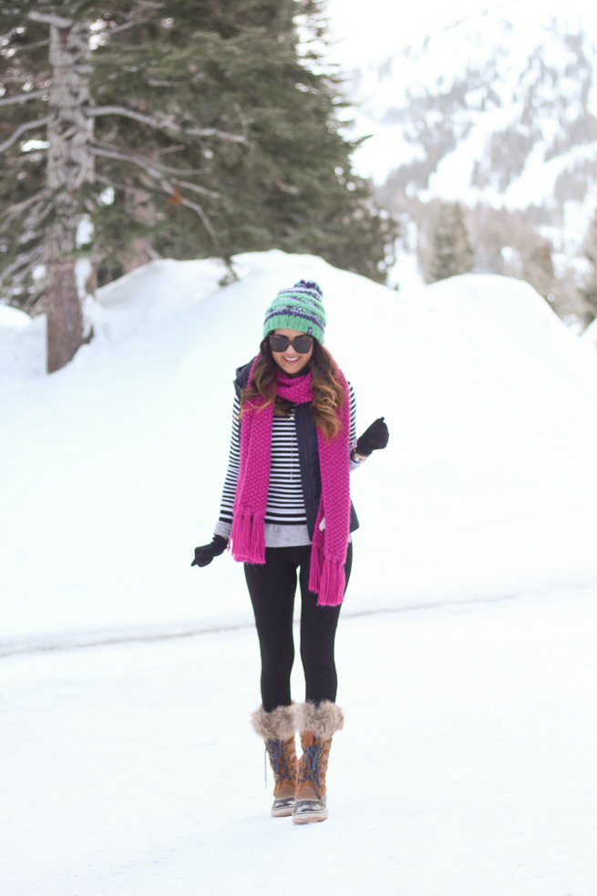 Today I am sharing the outfit I wore the first day we were there. I basically did the "lots of layers" thing for every outfit. However, this one was more causal since I wore this on the drive there. I added the vest, beanie, and scarf once we got there and changed from these sneakers to these boots.