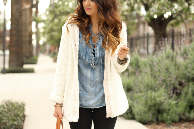 Today I am sharing an outfit I've been wearing a lot lately. Casual outfits have been my go to with the cold and gloomy weather. Layers have been my best friend, since it seems to rain everyday (seriously over the sudden showers). Anyhow, this weekend was just cloudy and rainy so I opted for a wearing these pieces that are above all comfortable. I wore this jacket recently to Mammoth too, and it's like wrapping your self in a warm blanket. I high recommend this one!